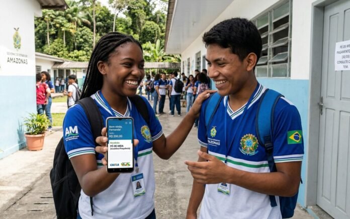 O valor depositado é de R$ 200, referente ao Incentivo-Frequência, criado pelo Governo Federal para combater a evasão escolar e apoiar financeiramente os jovens de baixa renda.